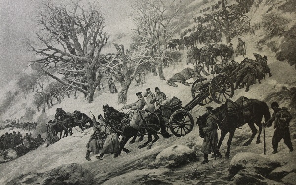 картины и гобелены, иконы Гелиогравюра "Переход через балканы" изд. И.Кнебель